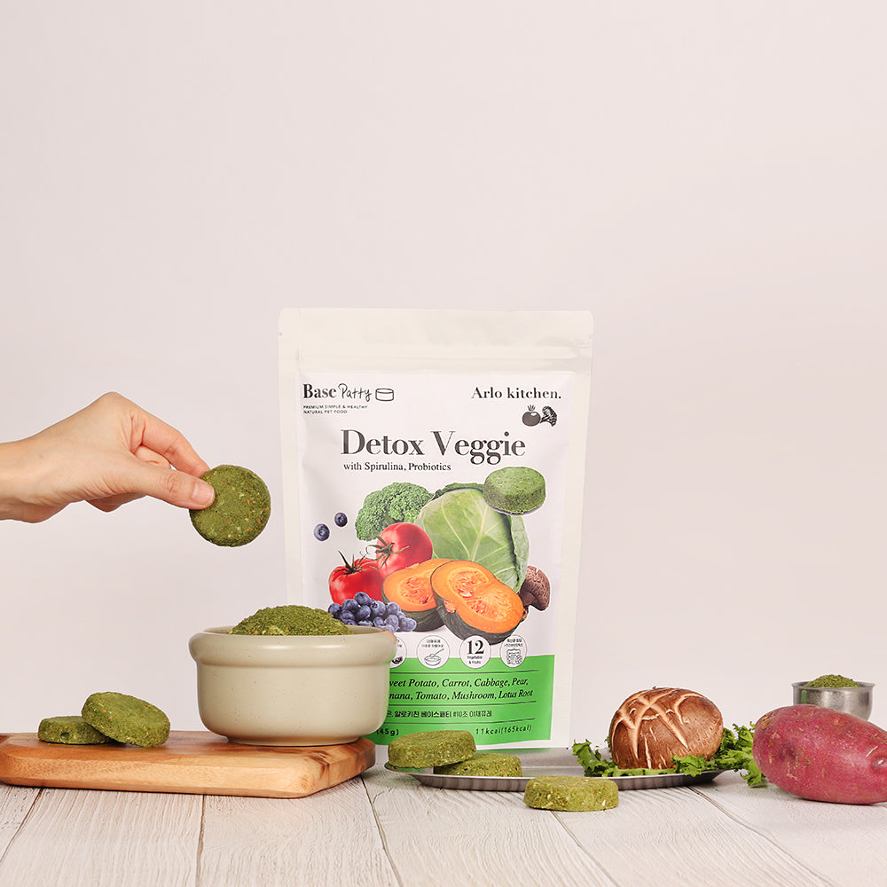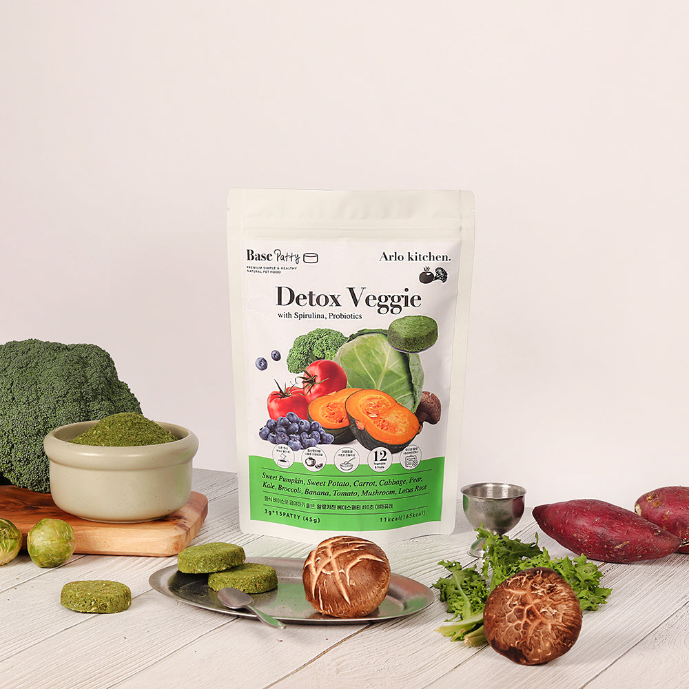 Help your dog detox naturally with a powerful green blend of Korean-grown spirulina, broccoli, kale, and pear. These freeze-dried patties are designed to support liver detoxification, digestion, and overall vitality—the green way!