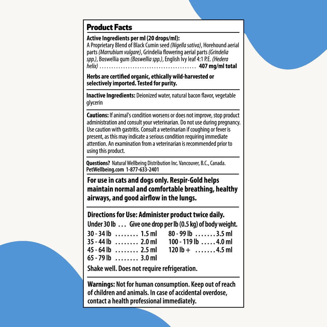 Pet Wellbeing - Respir Gold - for Easy Breathing in Cats & Dogs