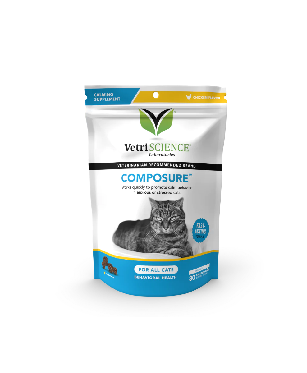 Composure™ supports calm behavior, relaxation, and stress management in cats using safe, science-backed ingredients. These calming chews are not a sedative and wont dull your cats shine. Use before travel, thunderstorms, fireworks, trips to the vet or groomer, holidays or parties, when guests come to visit, or whenever your cat or kitten needs a little help relaxing.