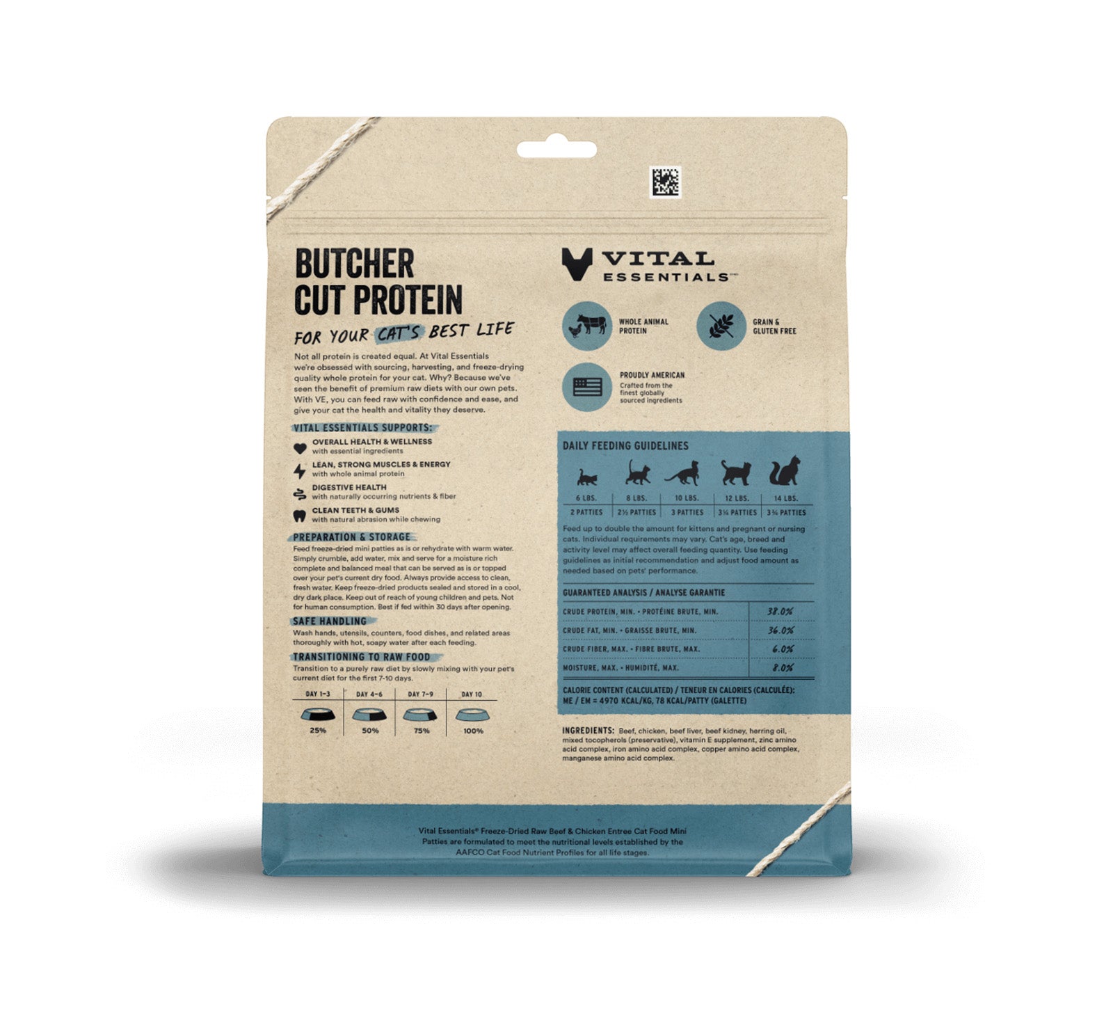 Vital Essentials® Freeze-Dried Raw Beef & Chicken Entree Cat Food Mini Patties, 8 oz