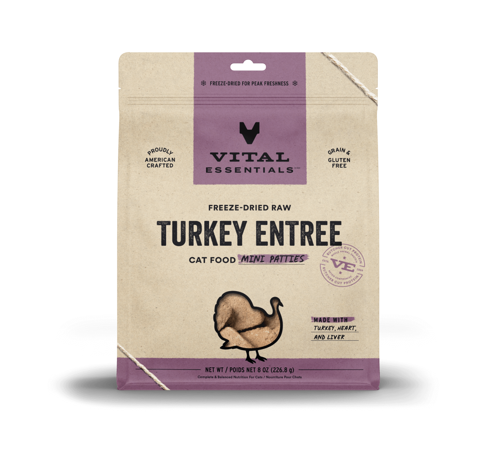 Vital Essentials® Freeze-Dried Raw Turkey Entree Cat Food Mini Patties, 8 oz